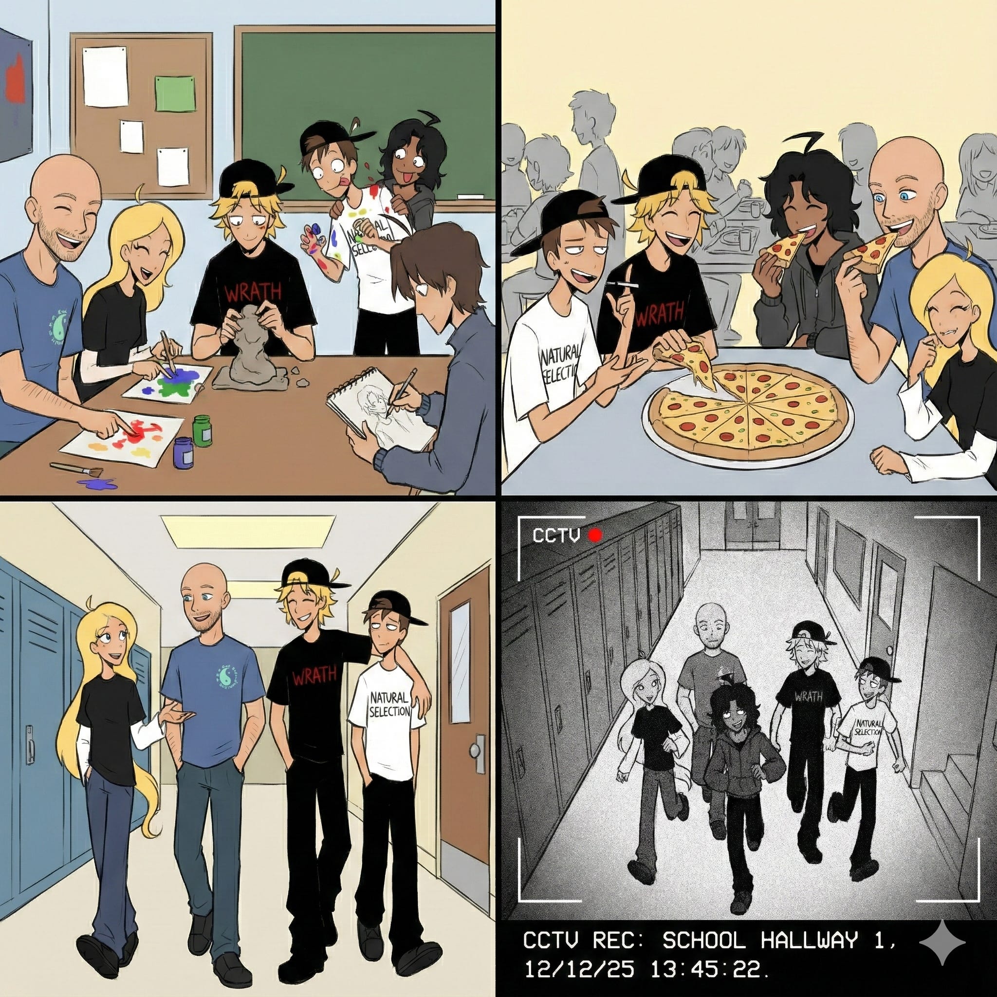 My prompt was “make a four panel cartoon of me and my friends having fun at school”. The bottom right panel is beyond words as Google’s LLM created a black and white CCTV image that looks just like the infamous videos from the Columbine attack. Tech companies have created these tools with absolutely no guardrails on what kinds of images they will generate.