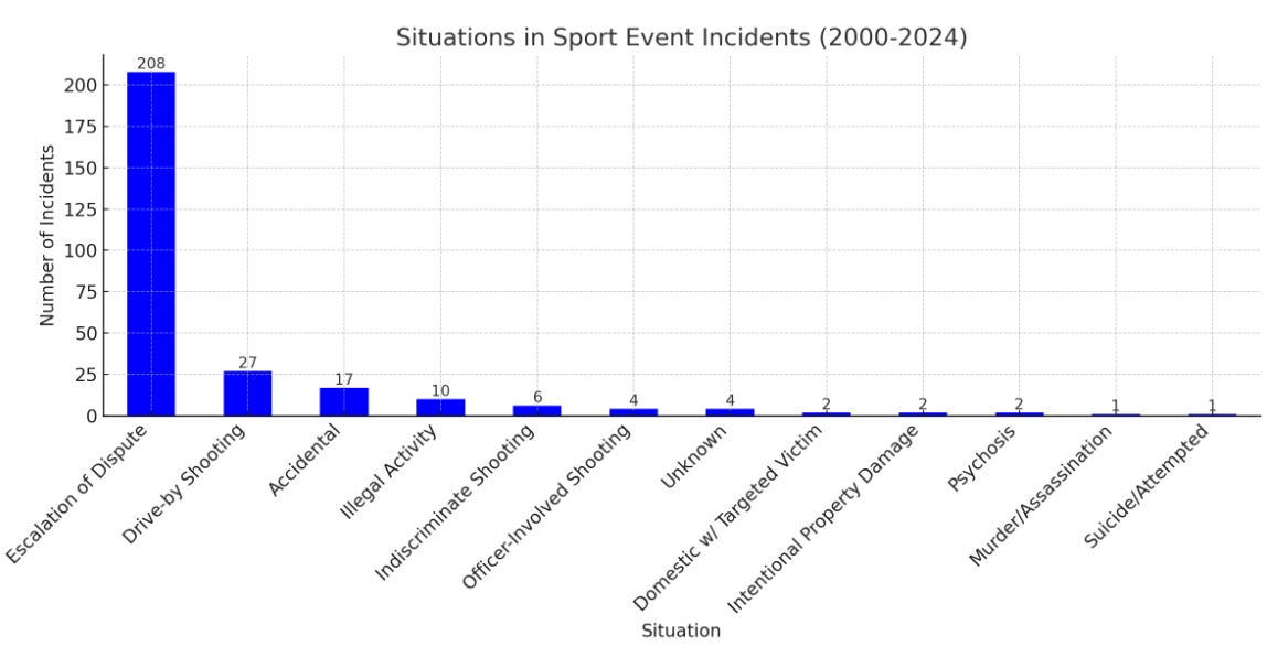 Even when this is a well document problem that happens each fall, it’s only getting worse. As I told ESPN three seasons ago, shootings at school sporting events surged to 171 incidents over the past decade, with 22 people killed and 171 wounded.